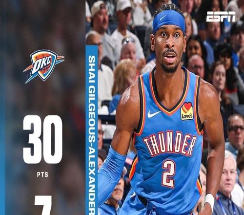 NBA战报:雷霆137106轻取鹈鹕取NBA7连胜,亚历山大30+2+7
